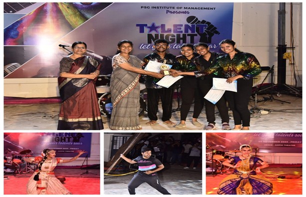 A cultural fest, “Talent Night’ took center stage at PSG Institute of Management on November 3rd. The stage set by the seniors provided a platform for freshers to showcase their dynamic musical, dance, and artistic talents.